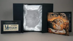 „Geopolitik Kind beobachtet die Geburt des Menschen“ ist ein berühmtes Gemälde aus dem Jahr 1943 von Salvador Dalí. Dieses gläserne Kunstwerk stellt das Ei in den Mittelpunkt – ein kraftvolles Symbol für neue Möglichkeiten. Die Fragmente der Kontinente deuten darauf hin, dass es nicht nur eine persönliche Kreation ist, sondern eine globale Perspektive widerspiegelt. Das zerbrechende Ei steht für die Instabilität des Alten und das Aufkommen einer neuen Ära. (SD03C – h. 6,5 cm. clear)
