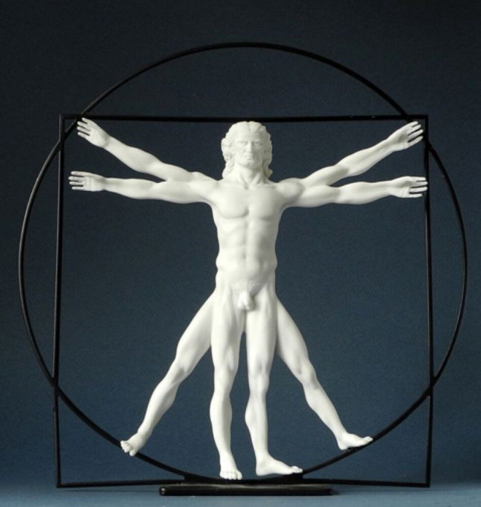 Als Autodidakt hatte da Vinci die Neigung, seinen Mangel an klassischer Ausbildung mit einer Vielzahl von empirischen Studien auszugleichen. Die bekannteste dieser Studien hat den vitruvianischen Mensch zum Thema, der so genannt wird, weil er auf einer Beschreibung der idealen Proportionen des menschlichen Körpers basiert, die von dem römischen Architekten Vitrivius (etwa 85-20 v.Chr.) stammt.