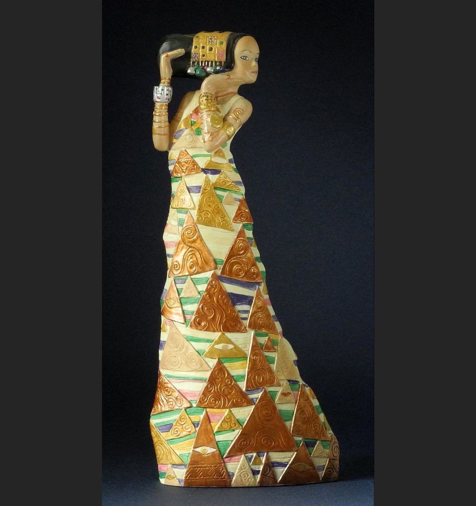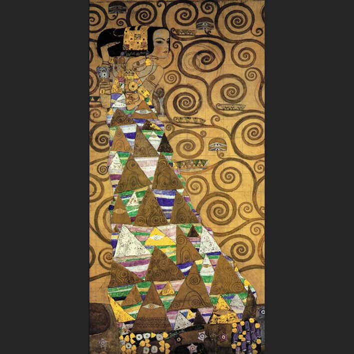 Klimt selber war ein wortkarger Mann und nannte es später einfach 'Die Tänzerin', aber vielleicht steht diese geometrisch ornamentalen Darstellung einer jungen Frau doch in einem logischen Zusammenhang mit 'Die Erfüllung', ebenfalls ein Entwurf für ein Mosaik im Schloss Stoclet in Brüssel.