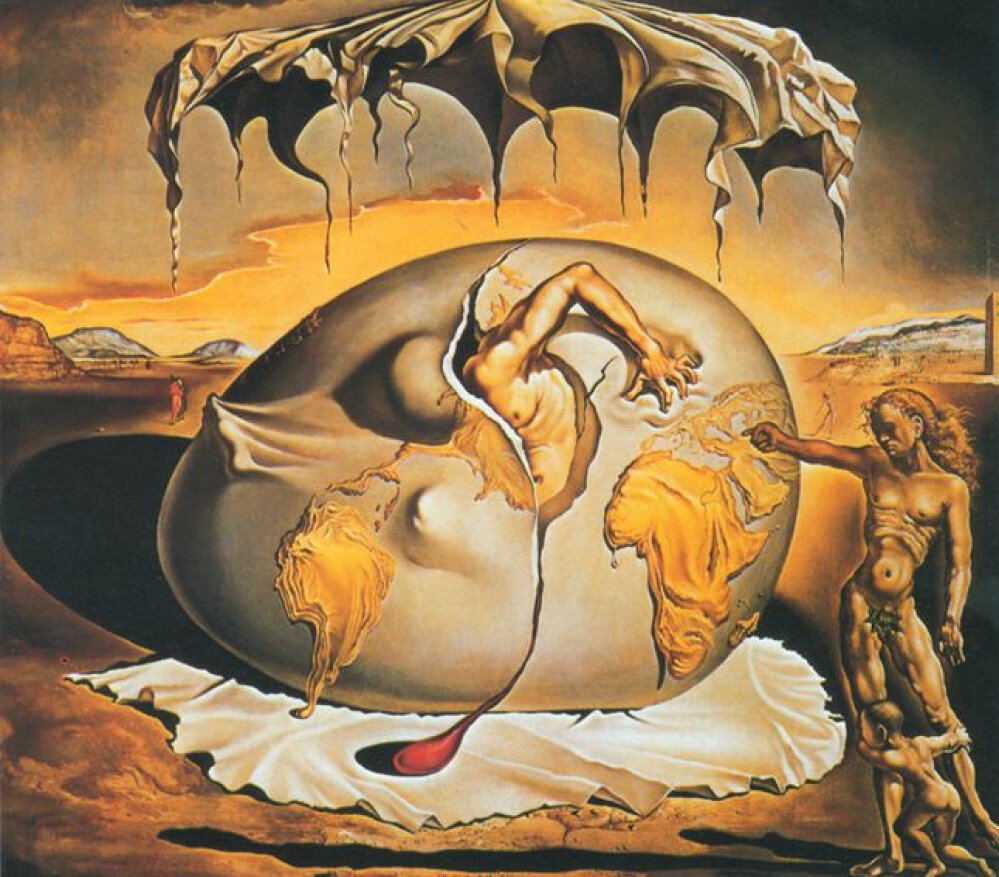 Geopolitisches Kind beobachtet die Geburt des neuen Menschen