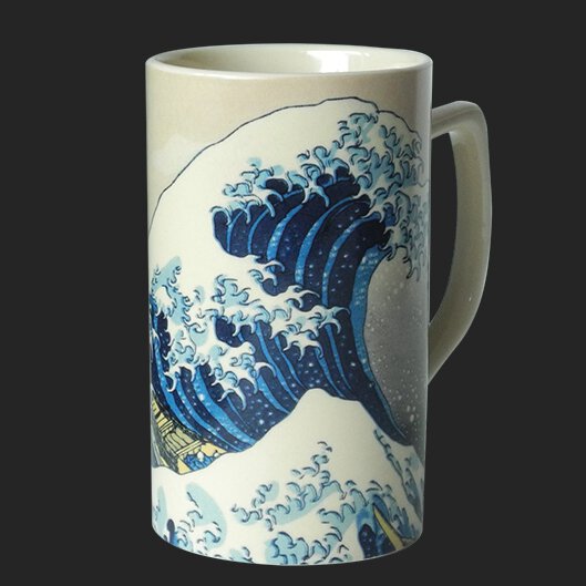 Der berühmte Holzschnitt der großen Welle mit dem Berg Fuji im Hintergrund ist das erste Blatt der berühmten Serie „36 Ansichten des Berges Fuji“ aus der späten Edo-Zeit. Die enorme Welle bedroht zwei Boote vor der Küste der Präfektur Kanagawa (direkt südlich von Tokio).