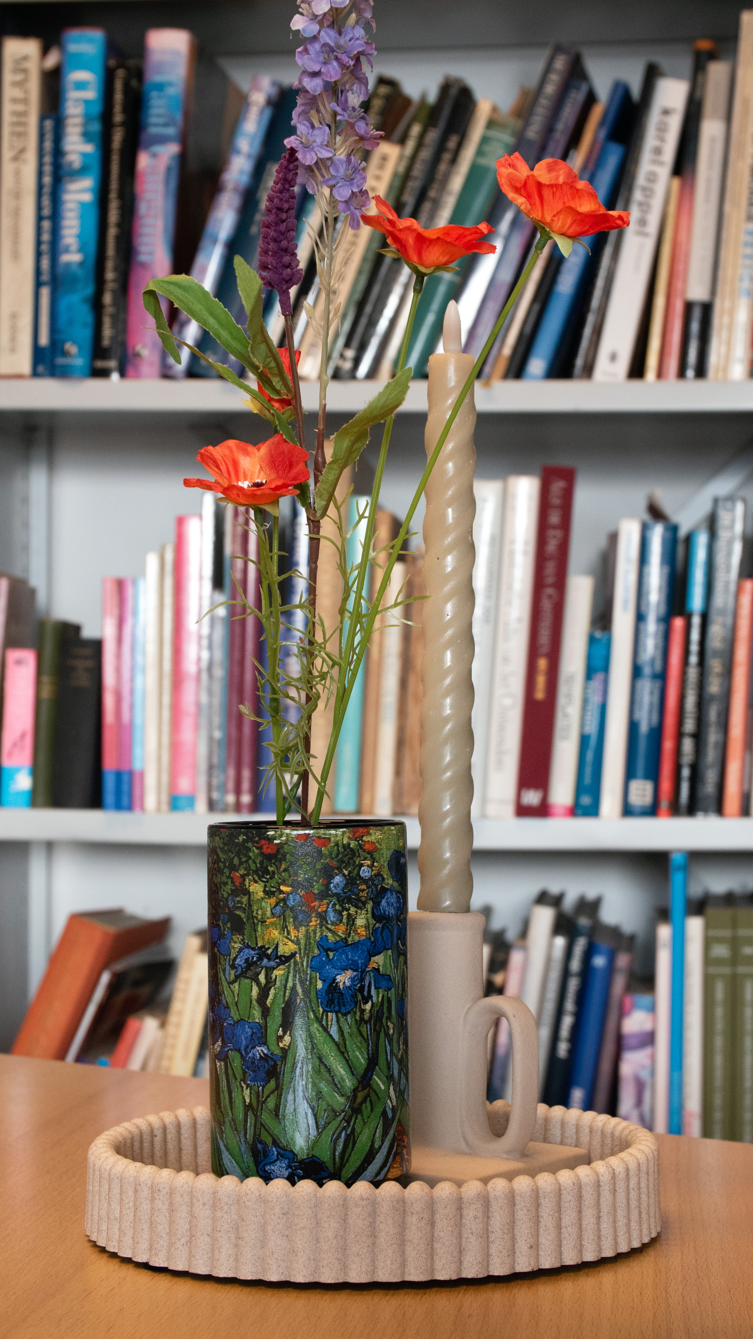 Bringen Sie die lebendigen Farben von Van Gogh auf Ihren Schreibtisch mit unserem Stifthalter mit dem Motiv Iris (1889). Van Gogh malte dieses Werk im Asyl von Saint-Rémy-de-Provence, wo er Trost und Ruhe in der umgebenden Natur fand. Die Irisblüten, mit ihren anmutigen Formen und kräftigen Blautönen, waren für ihn eine Quelle sowohl des Studiums als auch der Emotion – ein Spiel aus Licht, Bewegung und Harmonie. Das Gemälde gilt als eines seiner ausdrucksstärksten und hoffnungsvollsten Werke aus dieser Zeit.