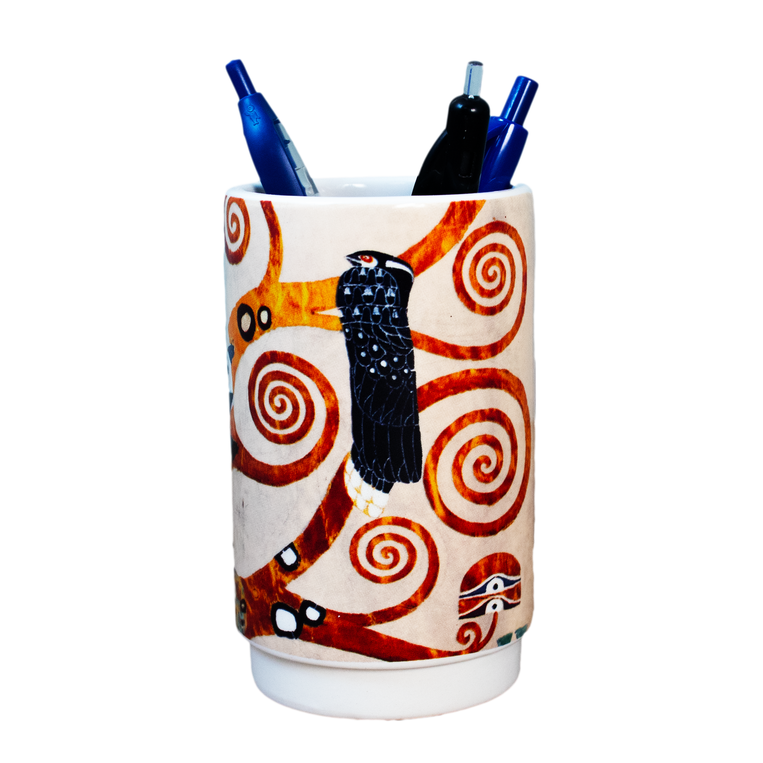 Bringen Sie einen Hauch von Art-Nouveau-Eleganz an Ihren Schreibtisch mit unserem Stifthalter, der Der Lebensbaum, Stoclet-Fries (1905) von Gustav Klimt zeigt. Der symbolische Lebensbaum ist Teil des dekorativen Entwurfs eines Mosaiks am Fries des Speisesaals im Palais Stoclet in Brüssel. Dieses Meisterwerk mit seinen eleganten Linien, goldenen Akzenten und üppigen Details verwandelt Ihren Arbeitsplatz in eine inspirierende Umgebung. Funktional und stilvoll bietet dieser Stifthalter den perfekten Platz für all Ihre Stifte, Bleistifte und Marker, während Sie täglich ein ikonisches Kunstwerk genießen können.
