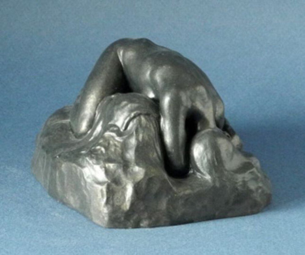 In der Griechischen Mythologie geht die Mär über Danaïde und ihre 49 Schwestern, die mit den fünfzig Söhnen des Ägyptus verheiratet waren. Ihr Vater, Köning Danaos, der in Konflikt geraten ist mit Ägyptus, beauftragt Seine Töchter, ihre Männer während der Hochezeitsnacht zu ermorden. Als Straf für ihre Freveltat wirden sie in die Unterwelt verbannt, wo sie bis in alle Ewighkeit Fässer mit Wasser füllen müssten, Fässer ohne Boden, die sich nie füllten. Rodin sah in diesem Bild die Möglichkeit, die totale Erschöpfung des weiblichen Körpers zu veranschaulichen. Das Marmor akzentuiert die fließenden Linien und wiederspiegelt die Ästhetik des Art Nouveau.