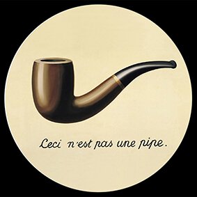 René Magritte war ein weltberühmter belgischer Maler des Surrealismus. Sein bekanntestes Werk ist zweifellos „La Trahison des images“ oder „Der Verrat der Bilder“ mit dem Schriftzug „Ceci n’est pas une pipe“ („Dies ist keine Pfeife“) unter der realistischen Abbildung einer Pfeife.