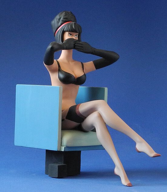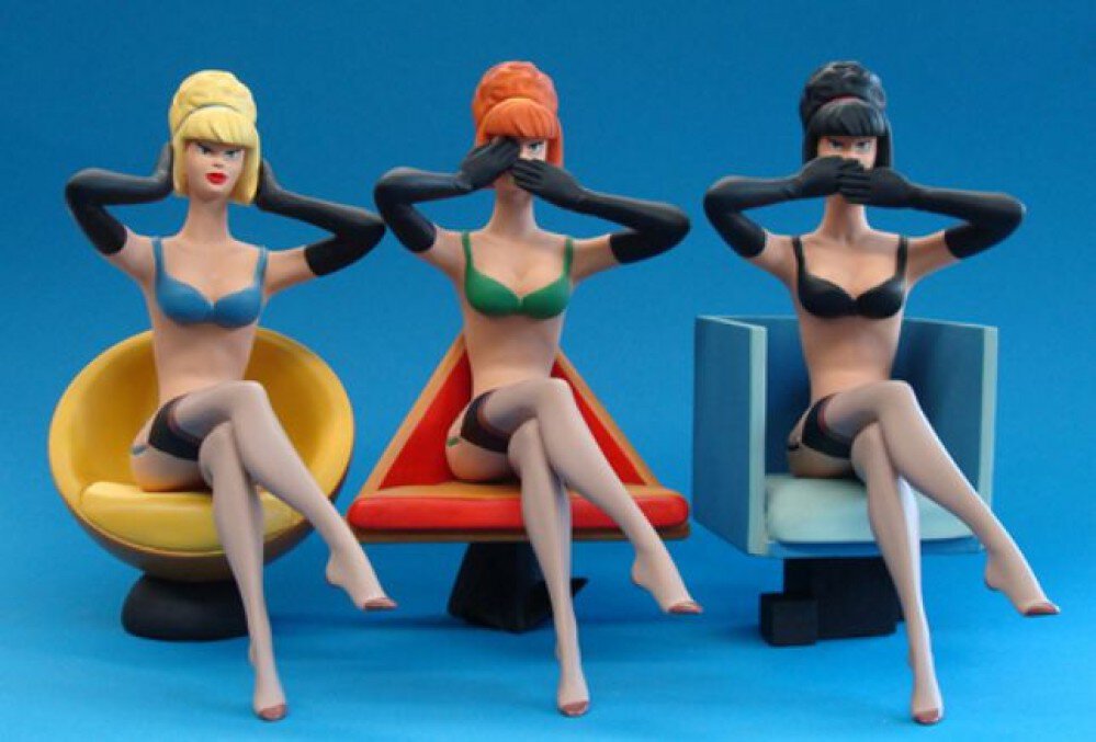 Stephan Saint Emett was born in the Spanish town Santander in 1962. At the age of four he and his parents moved to France, where he studied literature, architecture and art in Paris at the renowned Penninghen/Esag studios. After he had made a short film, for which he received several awards, he took up the idea to create three-dimensional figurines based on his film characters. At first he made his sculptures from polystyrene but soon afterwards he started working with wood paste and poly resin, which enabled him to work in a more practical way, with more precision and at a quicker pace. His passion for women inspired him to create a new collection of original Pin-Ups, whom vary in age but have one thing in common – they are all seated in design chairs.