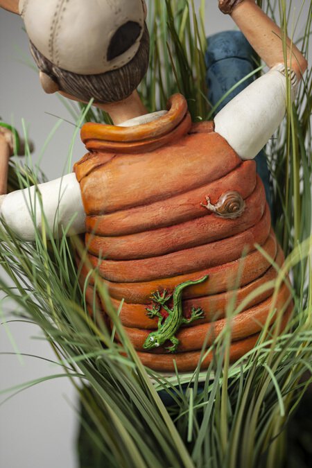 It was John's turn, and he hit the ball so hard that it disappeared into the tall grass. His friend kindly offered to help him look for it. Barely a minute later, Silvio found the ball among the weeds. Without John realising, Silvio grabbed it and threw it as far as he could.